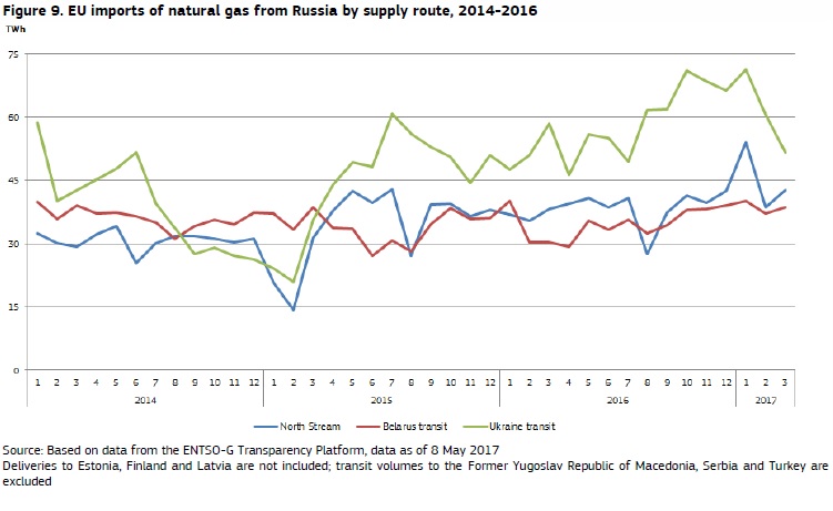 Nanešťastie dosahovanie rekordných objemov prepravy plynu spoločnosťou Eustream z predošlej dekády (70-80 mld. m³/ročne) je už len zbožným želaním, k čomu prispeli diverzifikačné projekty ruského Gazpromu. Rusi v súčasnosti môžu prepravovať plyn cez Ukrajinu, Poľsko (Jamal), ale aj popod Baltské more (Nord Stream).