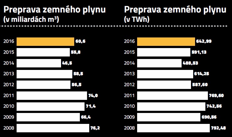 Ide o úspešné pokračovanie v trende zvyšovania objemov prepravy plynu cez naše územie, keďže po značnom poklese v roku 2014 sme zaznamenali opätovný nárast. Samozrejme tomuto stavu napomohlo zvyšovanie dodávok plynu cez Slovensko smerom na Ukrajinu a pokračovanie prepravy ruského plynu v smere do západnej Európy, predovšetkým cez rakúsky hraničný bod – Baumgarten.