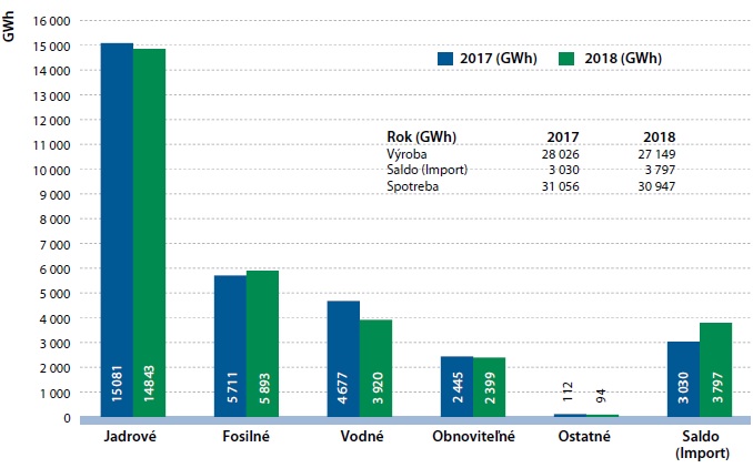 Minulý rok došlo k poklesu spotreby, ale aj výroby elektriny na Slovensku. Pokiaľ spotreba klesla len mierne z 31 TWh na 30,9 TWh, pri výrobe to bolo výraznejšie, keďže v roku 2017 sme dokázali na našom území vyprodukovať 28 TWh, avšak minulý rok už len 27,1 TWh elektrickej energie. Celkovo teda došlo k prehĺbeniu salda, čiže negatívnej bilancie importu a exportu elektriny za účelom uspokojenia domácej spotreby. Najväčší prepad vo výrobe zaznamenali vodné elektrárne, čo bolo spôsobené predovšetkým extrémnym suchom, a teda nedostatočnými prietokmi v minulom roku.
