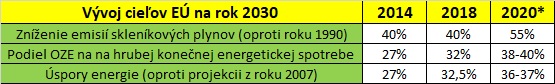 * Ciele z roku 2020 sú zatiaľ len návrhom EK
