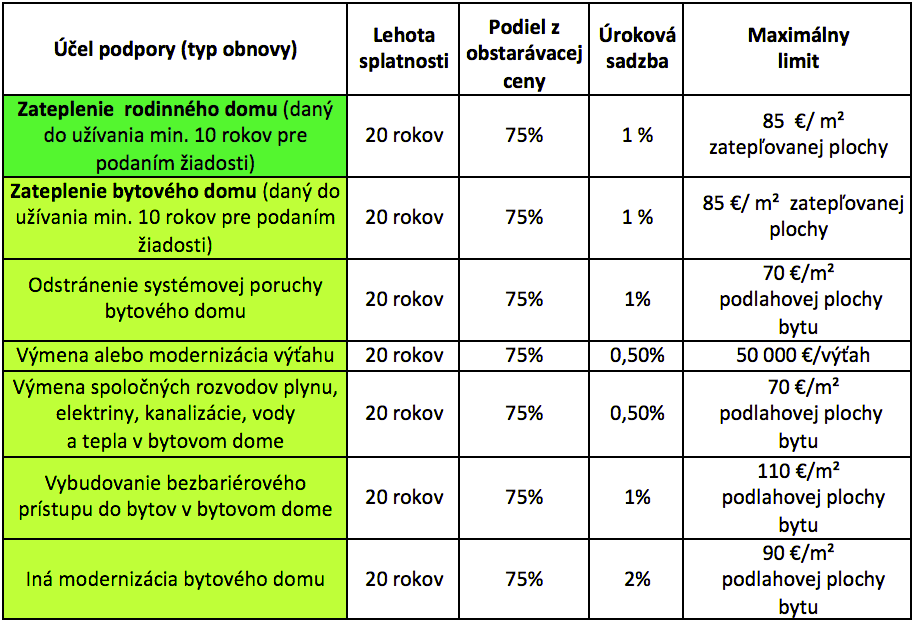 Štát ma naozaj veľkú ochotu vyčerpať peniaze eurofondov o čom svedčia aj zvýhodnené úvery ŠFRB schválené na rok 2016. Napríklad pri zateplení bytového domu (BD) sa znížila úroková miera z 1,5% na 1% a pri výmene či modernizácii výťahov klesla dokonca z 1% na 0,5%. Podobne motivačne pôsobí aj zvýšenie maximálneho limitu podpory pri výťahoch z pôvodných 32.500 EUR až na súčasných 50.000 EUR. Dokonca bol zrušený minimálny limit a tak možno o podporu na jednotlivé typy obnovy BD žiadať aj pri menších sumách.