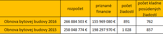 Pokiaľ sa dostaneme k súčasnosti, mali by sme sa pozrieť aj na rok predchádzajúci. Ten bol mimoriadne úspešný, keďže rozpočet ŠFRB bol navýšený o peniaze z eurofondov a len na účely obnovy bytových budov dosahoval úroveň až 266 mil. EUR. Celkovo bolo v roku 2016 úspešných 762 žiadateľov, ktorým boli priznané financie v sume presahujúcej 155 mil. EUR.