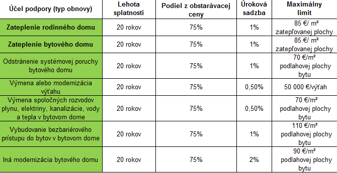 Aj v roku 2017 pretrvávajú atraktívne podmienky poskytované ŠFRB. Totiž pri realizácii dvoch typoch účelu obnovy, napr.: modernizácii bytového domu a výmene výťahov bude rozhodujúca nižšia úroková sadzba priradená vybraním účelom obnovy. Dokonca pri uskutočnení aspoň troch typov účelu obnovy sa od najnižšej úrokovej sadzby ešte odpočíta 0,50% a tak môže byť výsledný úrok na úrovni neuveriteľných 0%. Avšak pri tom si treba byť vedomí, že úver ŠFRB pokrýva najviac 75% celkovej obstarávacej ceny obnovy, takže zvyšných 25% má byť pokrytých z iných zdrojov, napr.: fond opráv alebo komerčná pôžička.