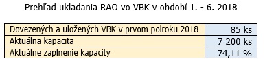 Do Republikového úložiska rádioaktívnych odpadov bolo v prvom polroku 2018 prepravených a uložených 85 kusov vláknobetónových kontajnerov.