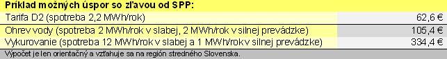 Zákazníci zo segmentu domácností, ktorí sa rozhodnú pre odber plynu aj elektriny od SPP, získajú zľavu na elektrinu vo výške až do 30 %. V prípade, ak sa zákazníci rozhodnú len pre odber elektriny od SPP, získajú zľavu až do 20 %. V oboch prípadoch SPP svojim zákazníkom garantuje dohodnutú cenu až do 31. decembra 2017. Aj po tomto termíne bude cena elektriny pre zákazníkov SPP výhodnejšia v porovnaní s tradičnými dodávateľmi. SPP, ako líder trhu s energiami na Slovensku, tak okrem bezpečných a spoľahlivých dodávok energií i nových produktov a služieb ich poskytuje za výhodné ceny.