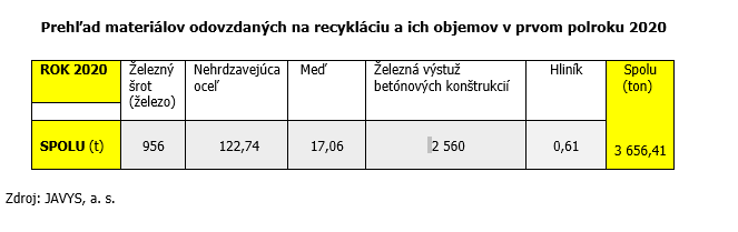Spoločnosť JAVYS, a. s., v prvom polroku 2020 v rámci vyraďovacieho procesu jadrových elektrární A1 a V1 zhodnotila viac ako 3 600 ton druhotných surovín z vyraďovaného materiálu.