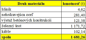 Z celkového objemu kovových odpadov tvoril najväčší objem železný šrot, a to až 1 171,7 ton. Druhým odpadom s najväčším objemom, ktorý bol odovzdaný do recyklačného procesu bola nehrdzavejúca oceľ, v objeme 281 ton.