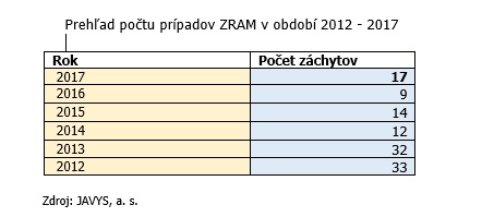 Spoločnosť JAVYS, a. s., v roku 2017 zabezpečila na území Slovenska záchyty rádioaktívnych materiálov neznámeho pôvodu v 17 prípadoch, pričom išlo prevažne o rôzne súčiastky staršej poľnohospodárskej a vojenskej techniky.