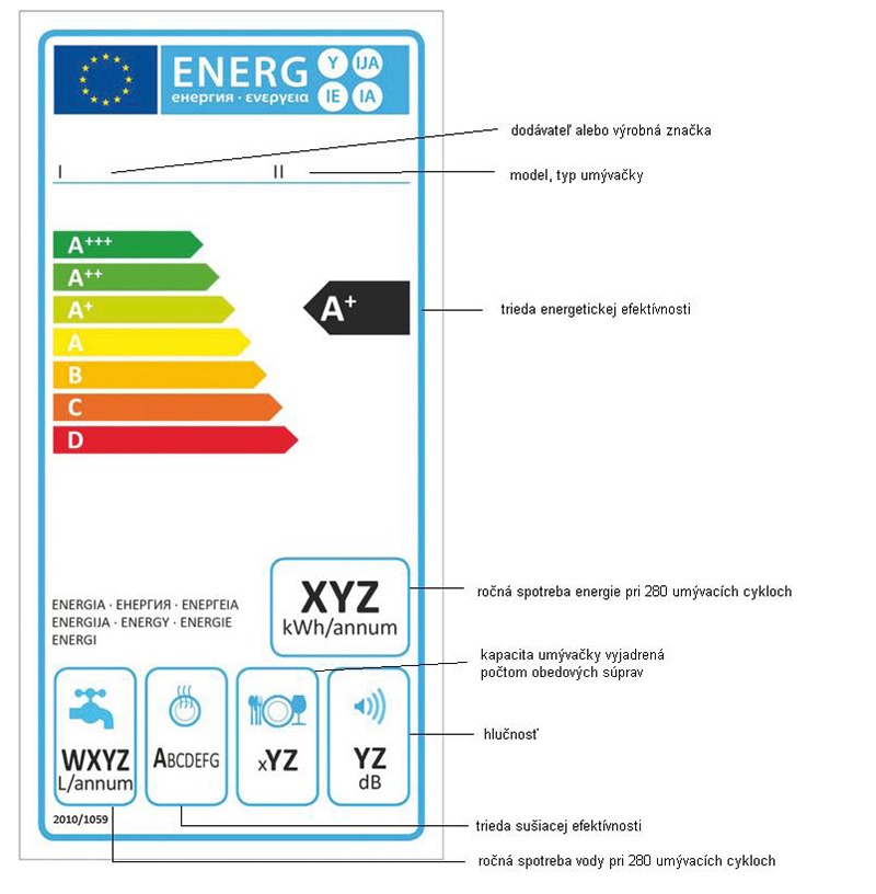 - Tak ako pri iných spotrebičoch, dnes môžeme vďaka energetickým štítkom s ľahkosťou porovnať triedu energetickej efektívnosti aj umývačiek riadu. V minulosti sa zákazník spravidla rozhodoval len na základe predajnej ceny, v súčasnosti už nie jeden z nás berie do úvahy aj prevádzkové náklady súvisiace so spotrebou elektrickej energie a vody;